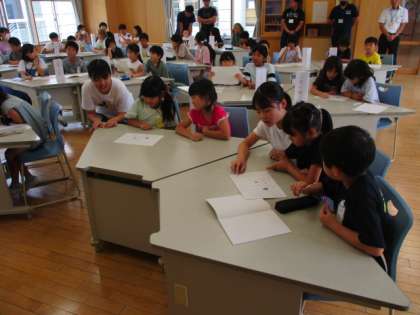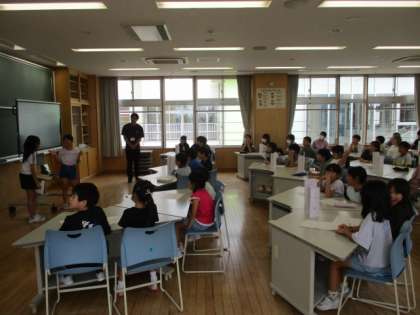 代表委員会が行われ、決定した150周年創校記念スローガンが発表されました。1年生も各クラスから代表1名が参加しました。6年生に分かりやすく説明してもらいながら聞きました。代表の人はクラスのみんなに決定したスローガンを伝えました。