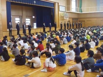 担任の先生方の元気いっぱいな挨拶がアリ—ナ中に響き渡り、さわやかな1年のスタートとなりました。