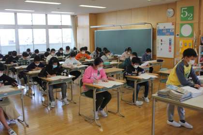 今日と明日の2日間、3年生以上の豊田っ子たちが学力調査に挑戦しました。今日は算数と社会、明日は理科と国語です。どの学年のどのクラスも、集中してがんばっていました。