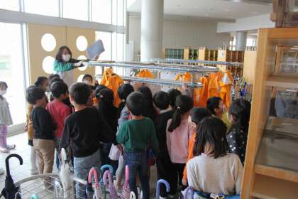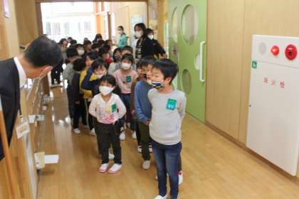 今日は、学校探検をしました。校内のいろいろな部屋や場所を探検しながら、学校生活におけるル—ルなどを学んでいます。