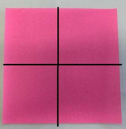 1 折り紙やちらしを半分に2回折ります。