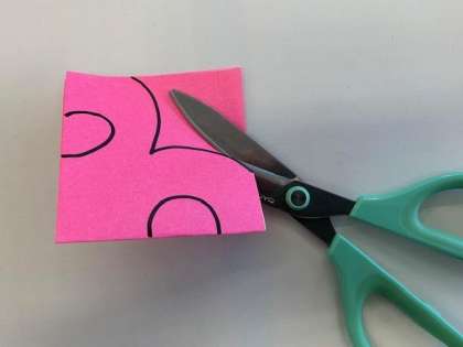 3 描いた模様をはさみを使って切ります。