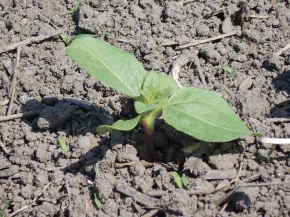 畑に行ってみると、ホウセンカ畑のまわりに、たくさんの「め」が出ていました。先生たちは、何もうえていないのに。