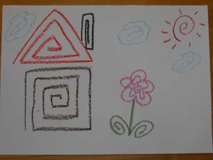 くれよんを つかって、がようしに ぐるぐるをかいてみましょう。