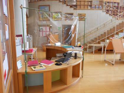 6月1日(月)の学校再開に向け、図書室も「3密」にならないように、司書の先生が準備を進めています。