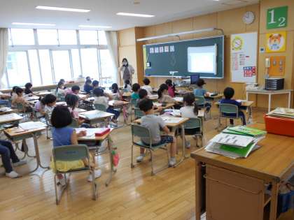 教室では、机をできるだけ離し、換気を十分に行い授業を再開。