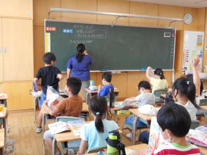 まずは、日陰で説明を聞きました。体育の時は、マスクを外すので、おしゃべりは厳禁です。