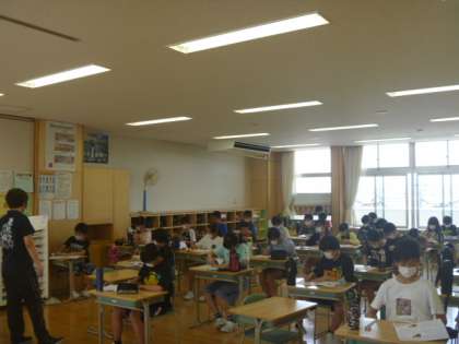 4組は、テスト直しをしている様子です。子供たちは、テストで間違いの多かったところやポイント等の説明を静かに聞くなど、真剣に学習に取り組んでいました。