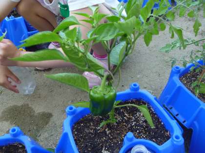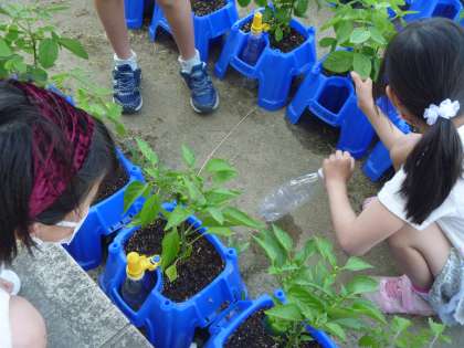 子供たちは毎朝、水やりをしながら野菜を観察しています。