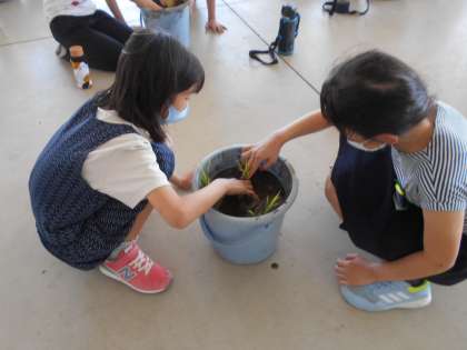 今年度5年生は総合的な学習の時間で米作りに挑戦します。米は日本人の主食であり、受け継がれてきた食文化の一つです。普段何気なく食べている物がどのような過程を経ているのか生育する体験をしたり、食文化について調査したりするなどして、学習をつくりあげていきたいと考えています。