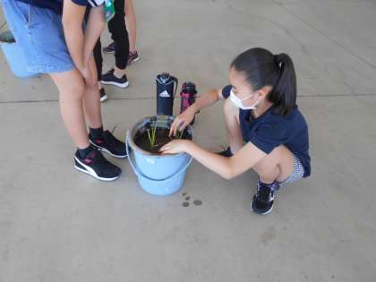 今日は、昨日作った土に苗を植え付けました。土の感触に驚きながらも、心を込めて植えていました。水の管理をしっかりと行い、収穫の秋が迎えられるように学習を進めていきたいと思います。