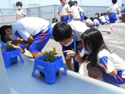 毎朝だけでなく、休み時間も進んで水やりを行っています。