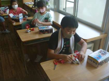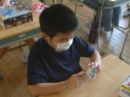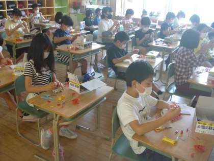 理科「電流のはたらき」の実験をするためにキットを組み立てました。電気のはたらきで、モーターを回すことができました。