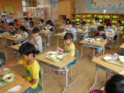 今日のメニューは、ごはん 牛乳 あじの竜田揚げ 豚汁 ひじきふりかけ 冷凍リンゴです。