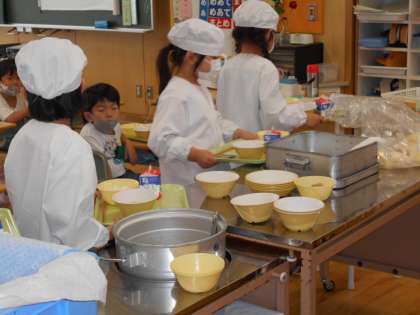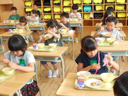 今日のメニューは、ごはん 牛乳 あじの竜田揚げ 豚汁 ひじきふりかけ 冷凍リンゴです。