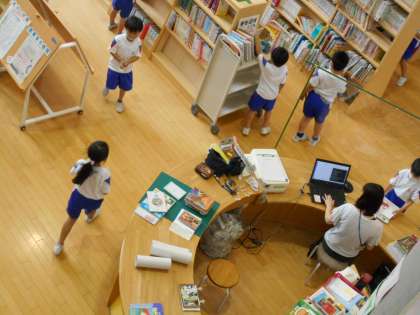 今日は、グラウンドで遊べないので、休み時間には本を借りる豊田っ子の姿が・・・。