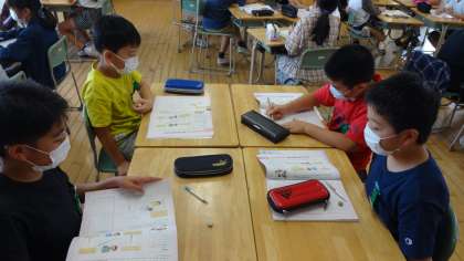 道徳科「ナイスリターン」の学習では、相手の気持ちを考えながら、自分の思いを伝えるにはどうしたらよいかを考えました。