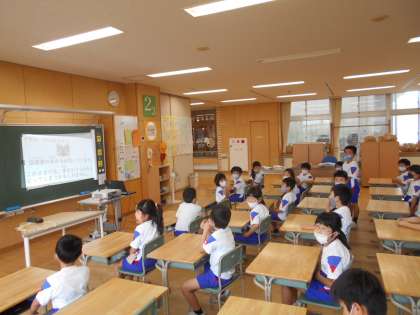 「落書きをしない」「破かない」「汚れない場所に置く」等、本の大切さについて、図書室からのお知らせを確認しました。