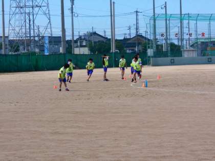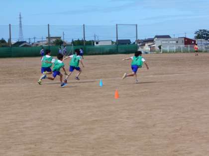今日は、久しぶりに青空が見られました。5年生は、リレーの練習に取り組んでいました。