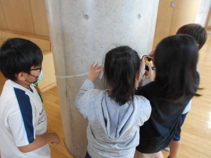 「円い柱は向こうが見えないから測るのが難しい。誰か手伝って!」