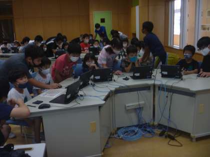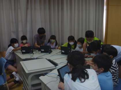 6年生にパソコンの操作を教えてもらいながら、生活アンケートに答えました。