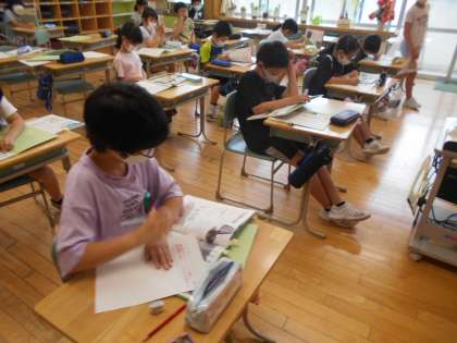 4年生の総合的な学習の時間では、「地球を守りたい」の活動をしています。7月1日から始まったレジ袋有料化をきっかけに、今の地球環境について考え、何がどのように大変なのかを図書室の本で詳しく調べています。