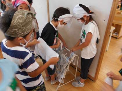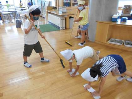 教室やワークスペース等、2年生エリアを中心に、黙働清掃をがんばっています。終わった後は、後片付けもきちんとしています。