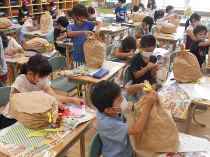 2年生 図画工作科「くしゃくしゃ ぎゅっ」