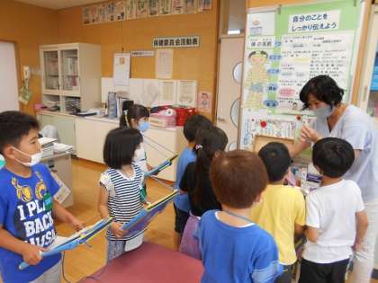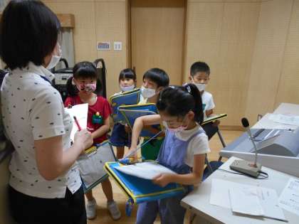 保健室と放送室を探検しました。発見したことや質問して分かったことを、真剣にワークシートに書き記していました。
