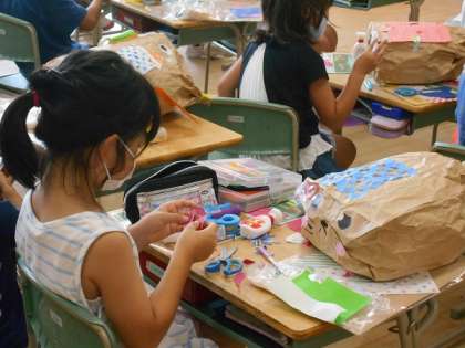 2年生 図画工作科「くしゃくしゃ ぎゅっ」その2