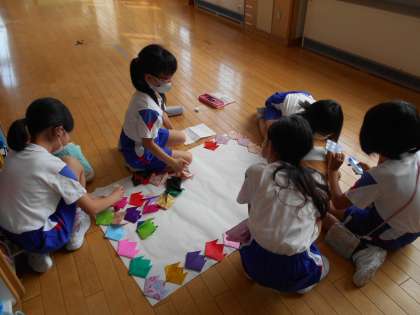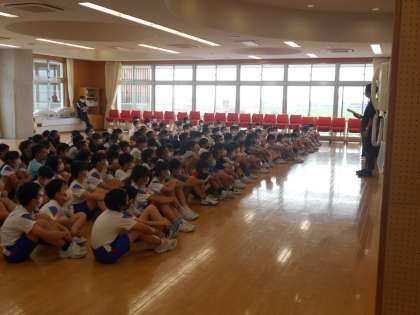 5年生は、学年集会。3年生は、お楽しみ会の準備。6年生の教室では、外国語科の学習。どの学年も1時間1時間を大切に、学習中。1学期も残すところ、後3日となりました。