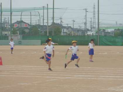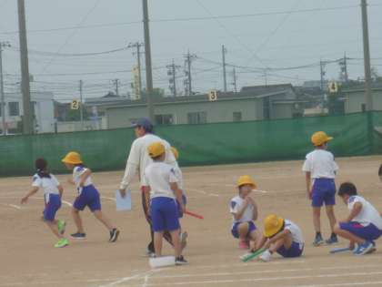 子供たちは、バトンの正しい渡し方や受け取り方を知って、何度も練習して確かめていました。