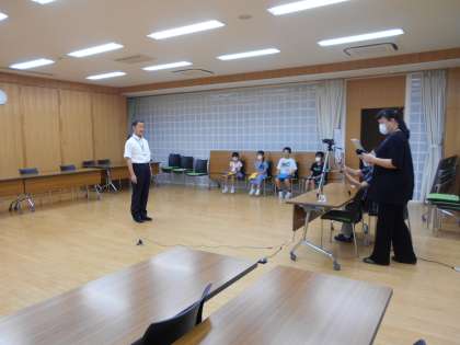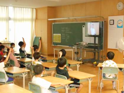 「3密」をさけるため、テレビ放送での終業式を実施しました。