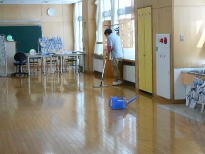 今日から14日まで、学校には清掃業者の人が入り、床のワックスがけや窓ガラスの清掃をしてくださいます。