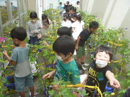 子供たちは、久しぶりにあさがおの世話もし、種取りをして楽しみました。