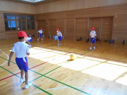 体育科の学習では、「キックベースボール」の学習をします。今日は、ペアでボールを蹴ったり、投げたりして練習しました。久しぶりのボール運動を楽しんでいました。