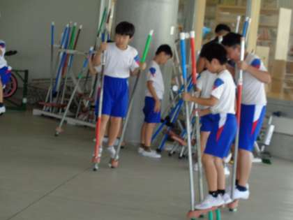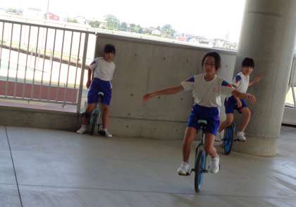 体育科の学習では、一輪車・竹馬・大縄跳びをしました。一輪車に乗れるように熱心に取り組んだり、高い竹馬に挑戦したりする様子が見られました。