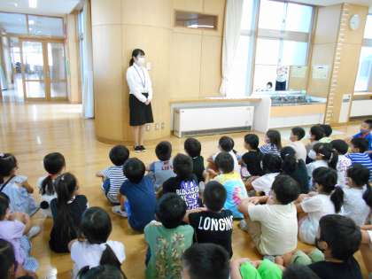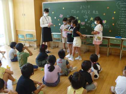 子供たちは、先生の自己紹介をしっかりと聞いて、すぐに名前を覚えました。一緒に勉強をしたり遊んだりして、早く仲良くなりましょうね。