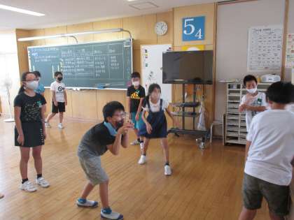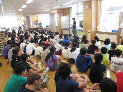 今日の屋外は気温34度、熱中症指数レベル4という暑い厳しい日でしたが、体育館では「ドッジボール大会」が行われ熱い戦いが繰り広げられました。教室では「だるまさんが転んだ大会」で仲良く楽しめる活動が行われていました。8月31日のクラブ活動に向けて、6年生は全員が集まり打ち合わせを行いました。他のクラス、学年でもそれぞれに工夫をこらした活動が進められていました。