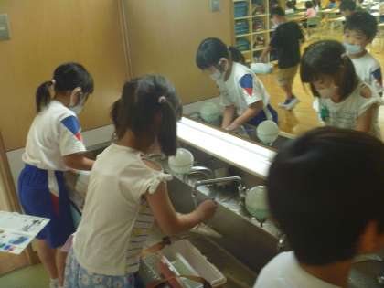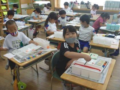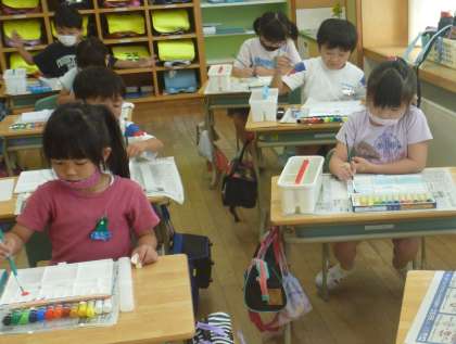 図画工作科の学習では、絵の具の使い方を学びました。