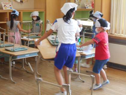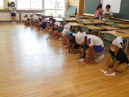 フレンドリー清掃に向けて、クラスごとに清掃するのではなく、6年生は学年のフレンドリー班で取りくんでいます。6年教室に加えて、特別教室等、1年教室の清掃に励む6年生の姿です。