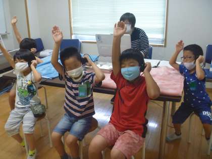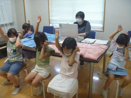 聴力検査をしました。 小さな音が聞こえたら手を挙げました。