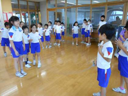 縄の真ん中で跳ぶこと、縄を抜ける時は回している人のすぐ横を通っていくことの2つを意識して今日は練習しました。