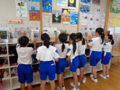 読んだ本を紹介する帯を作りました。キャッチコピーを書いたり、心に残った文を引用したりするなど、見た人がその本を読みたくなるような帯を作ろうと工夫していました。