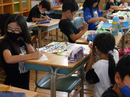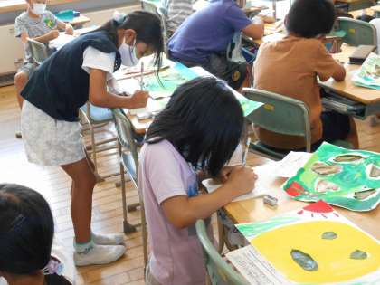 今日は、友達の作品のすてきを見つける鑑賞会を行いました。