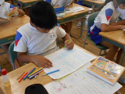 詩をていねいな字で写した後は、その詩に合うようにイラストを描きました。