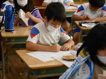3年生は「わたしと小鳥とすずと」の詩を写しています。
