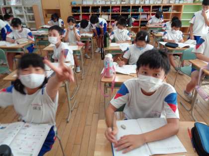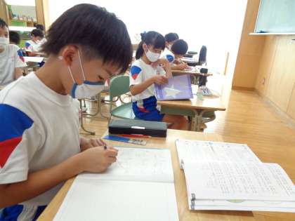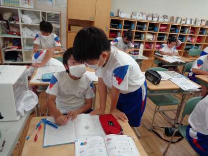 算数科では、2桁÷2桁の筆算に挑戦しています。友達と相談しながらどうやって計算するのかを考えたり、正確に計算しようと丁寧に取り組んだりする姿が見られました。