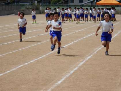 体育館で行ったのは4秒間走、グラウンドで行うのは2倍の8秒間走です。