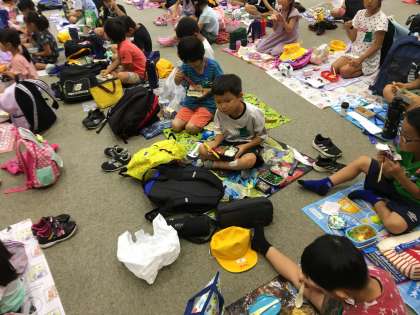 頑張って歩いた分、もぐもぐとお弁当を食べています。